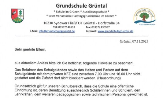 Liebe Eltern, bitte beachten Sie die wichtige Information der Schulleitung zum Thema "Betreten und Befahren des Schulhofs".