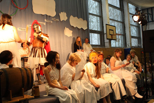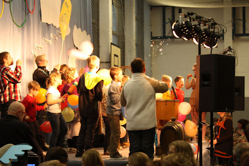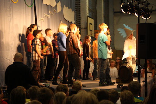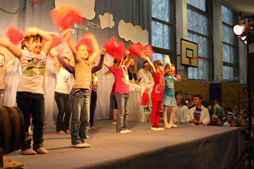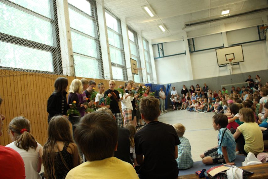 Das Schuljahr 2011/2012 wurde traditionell mit der Schülervollversammlung beendet. Dabei lassen wir das Schuljahr noch einmal Revue passieren, ehren besondere Leistungen und verabschieden die sechsten Klassen - diese bedanken sich bei den Lehrerinnen und Lehren mit netten Worten und einem Blümchen... Und nach dem Singen unserer Schulhymne begannen dann die Ferien.