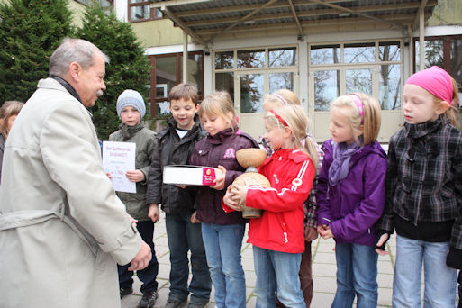 der Schüler und stellte ihrerseits Fragen. Stolz präsentierten die
