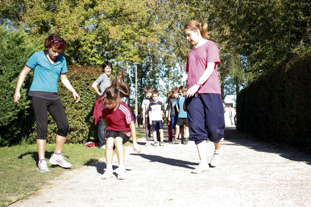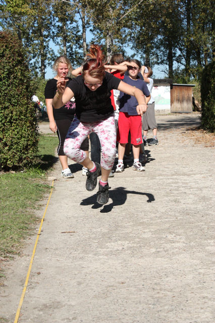 die Jahrgangsstufen 1und 2 absolvierten Zielwurf, Weitsprung und