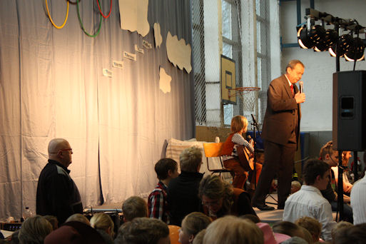 Turnhalle unser Schulleiter Herr Blanck auf der