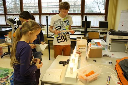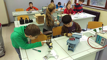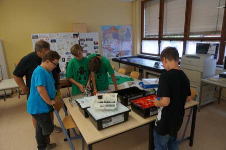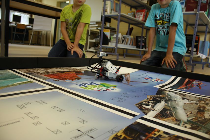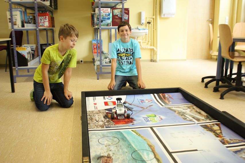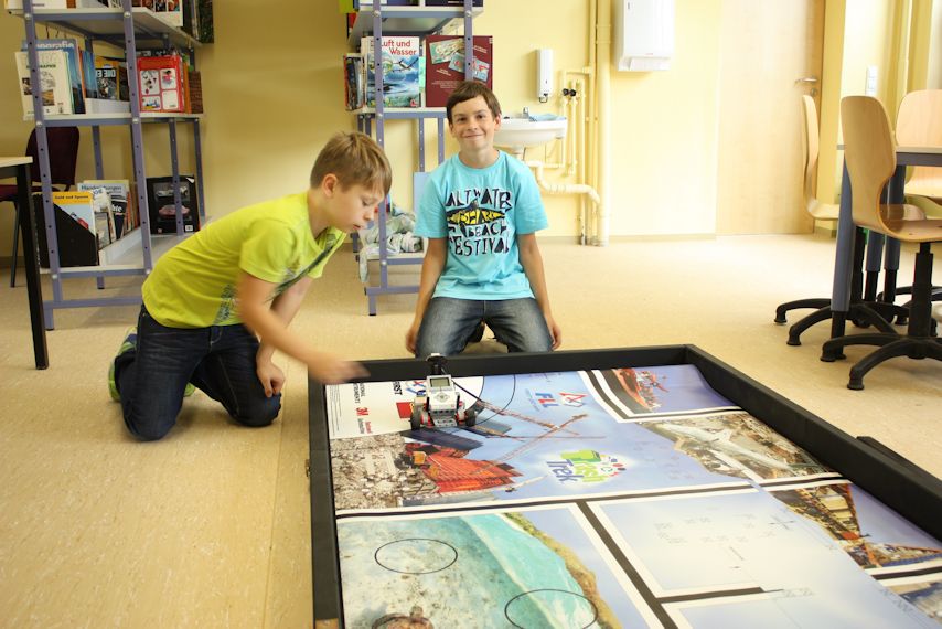Unter der Anleitung von Herrn Martinköwitz bereiten sich neun Jungen der sechsten Klasse auf die FLL-Ausscheidung am 28. November in Frankfurt/ Oder vor. In drei verschiedenen Wettkampfformen heißt es dort, Teamfähigkeit, Herz und Hirn zu zeigen. So muss eine Präsentation zum Thema "Abfall" gehalten werden, in einem Teamspiel heißt es zu beweisen, dass man auch ein echtes Team ist. Kernstück aber des Wettbwerbs ist der Robotikwettkampf. Dazu muss der programmierte und mit mehreren Motoren ausgestattete Roboter Aufgaben auf dem sogenannten TrashTrek ausführen. Dazu gibt es einen vorher veröffentlichten Spielteppich aus Papier. Damit dieser lange hält und damit wir unter realen Bedingungen üben können, benötigten wir einen Spieltisch. Herr Schmidtchen aus Tempelfelde fertigte uns nach unseren Vorstellungen maßgenau einen klappbaren, wettkampftauglichen Tisch! Wir sind sehr dankbar und werden ihn intensiv nutzen. Unten sehen wir die erste Inbetriebnahme... |