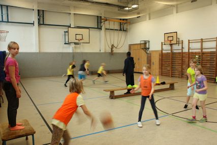 Traditionell beginnt der Ganztagsbetrieb in seiner ganzen Schönheit erst in der zweiten Schulwoche: Die Anbieter erwarten nicht weniger aufgeregt als die Schüler ihre AG-Mitglieder zur ersten Zusammenkunft. In diesem Schuljahr haben die 238 Schüler unserer Schule wieder eine sehr große Bandbreite an Angeboten. Sportlich, handwerklich, praktisch im Naturschutz, naturwissenschaftlich, musisch-ästhetisch: singend, tanzend, instrumental, zeichnerisch, neuerdings auch yogisch (wenn man das hier mal so schreiben darf): Die Liste ließe sich fortsetzen bzw. ausschmücken. Sie wollen die Liste sehen? Ein Klick zur Liste!
