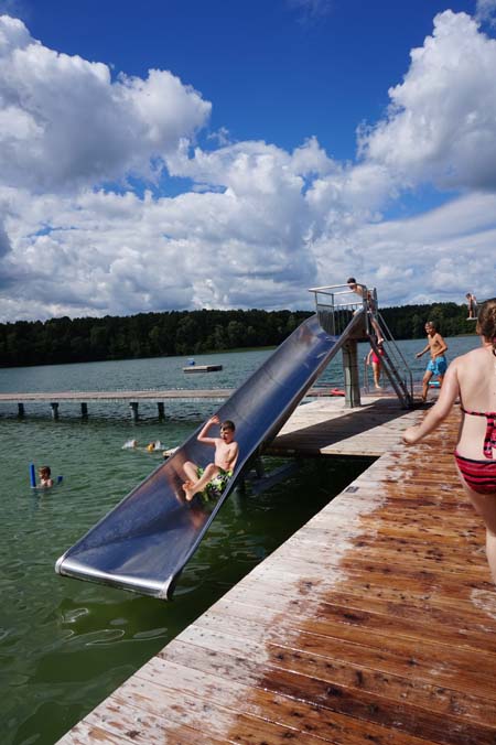 Zum Auftakt des Schwimmlagers der dritten Klassen unserer Schule am Wukensee durfte die Klasse 6 im extra angemieteten Bus mitfahren. Während die Schwimmlagerteilnehmer hart an ihrer Schwimmfähigkeit und Wassermutigkeit zu arbeiten hatte, stand für die Sechstklässler der Spaß im Vordergrund. Der Chronist führte die Aufsicht und hielt schöne Momente digital fest...