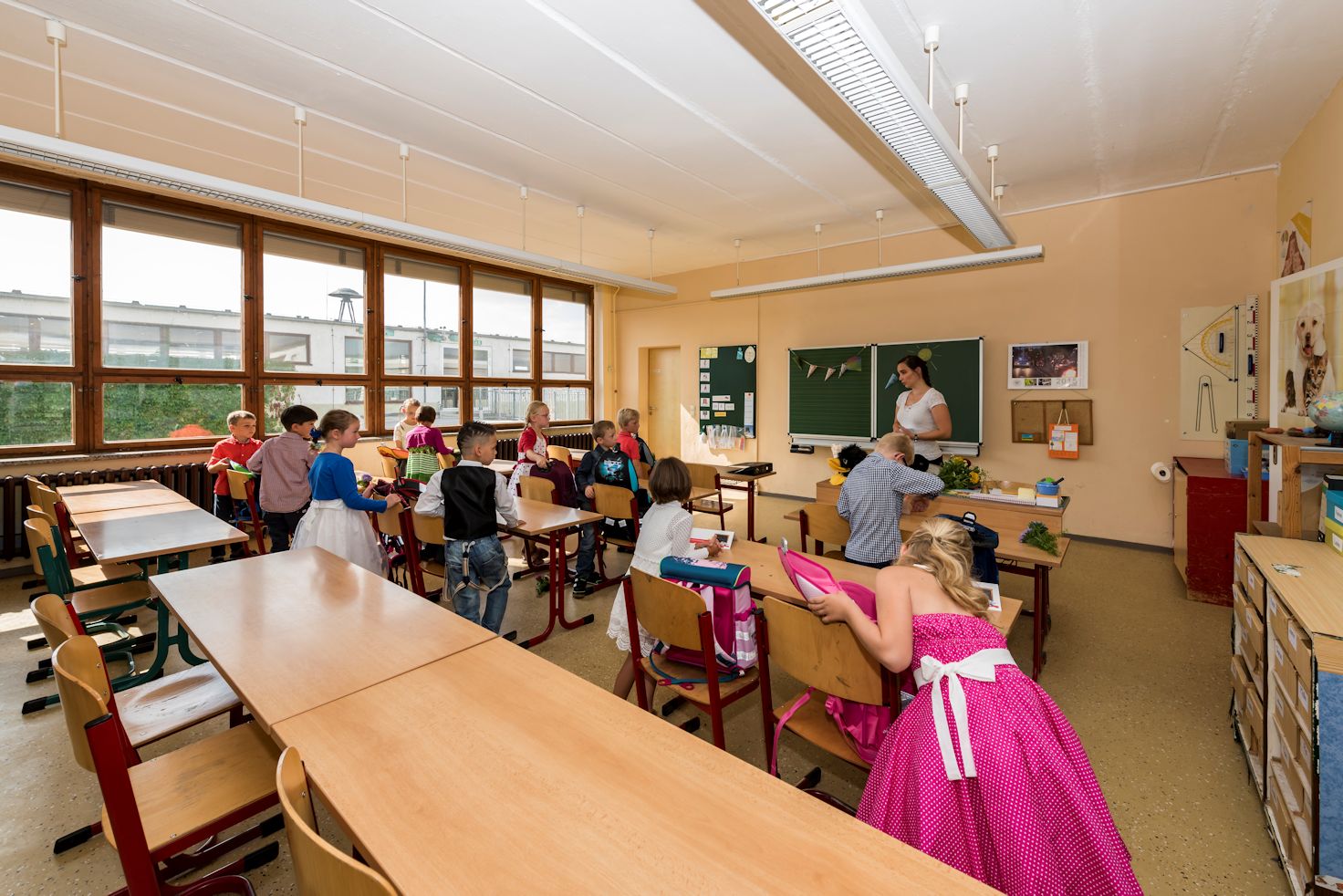 ![]() Nach der Einschulung in der Turnhalle ging es in den Klassenraum... |