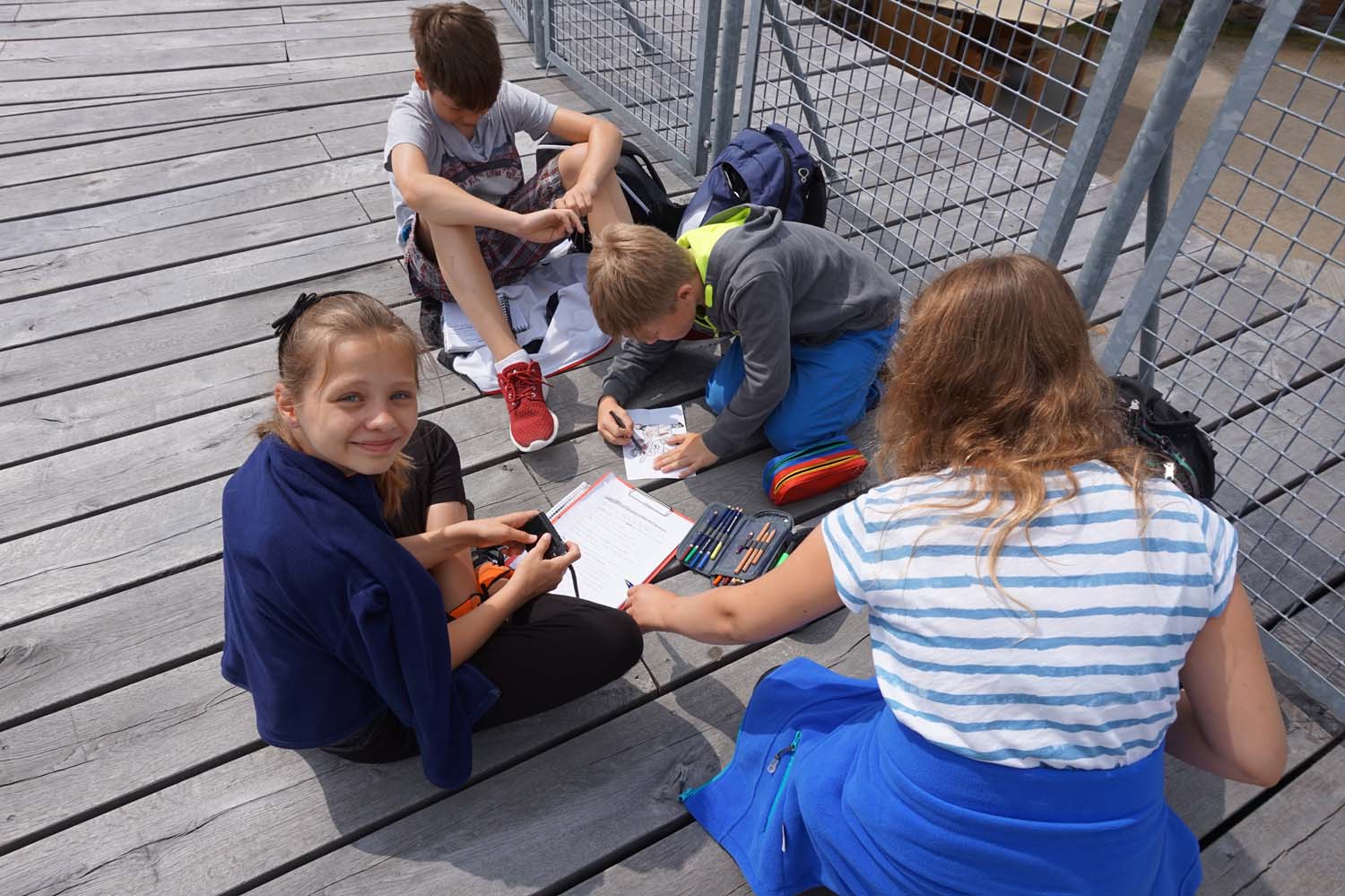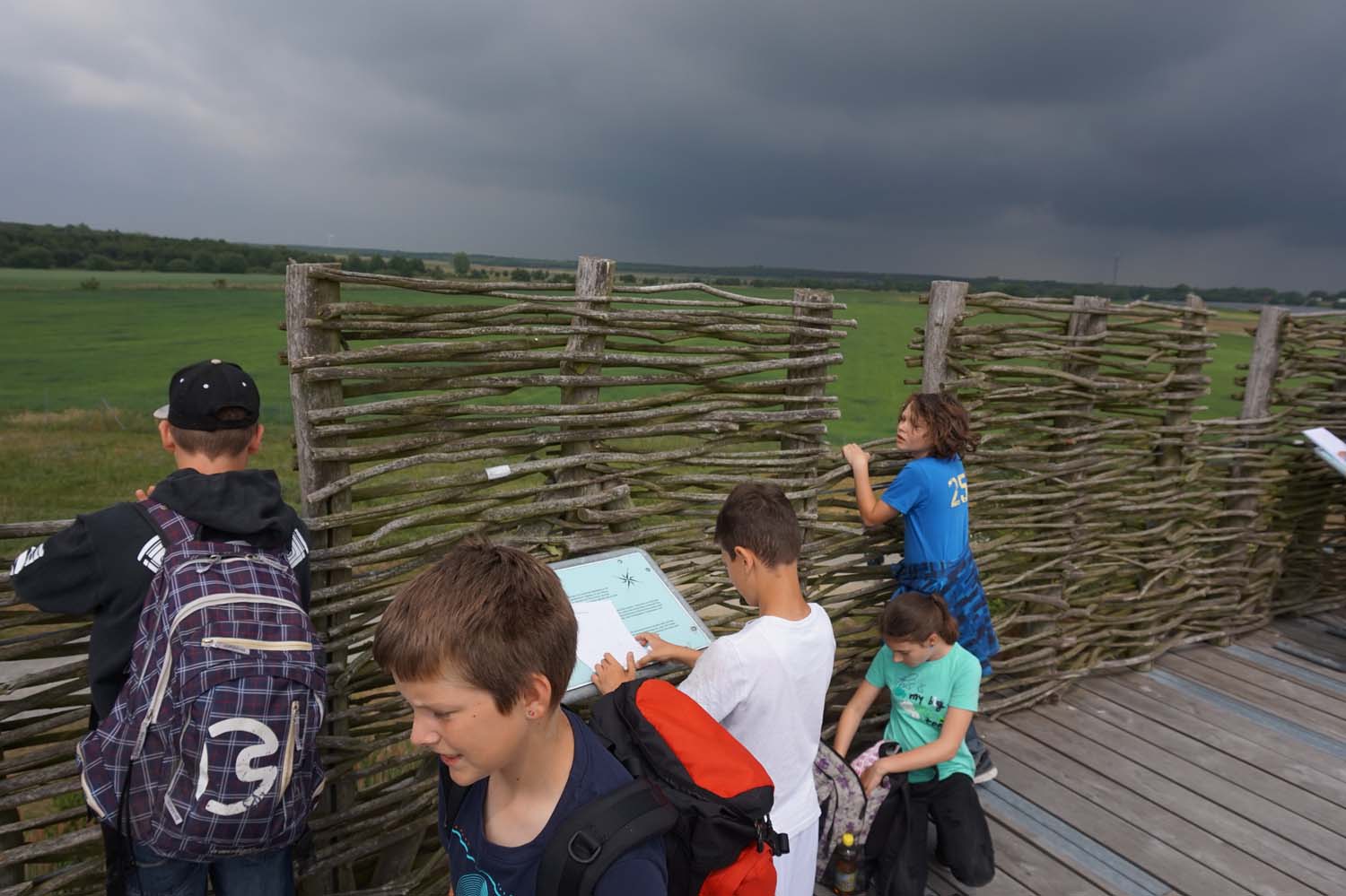 Zu den folgenden Fotos: In der Slawenburg mussten Aufgaben auf dem Wehrgang und im Museum gelöst werden... Anschließend ging es zur F60 und dort in drei großen Gruppen auf die größte bewegliche Maschine der Welt. Zum Abschluss ging es an den Aussichtspunkt Welzow Süd Stadt, gelegen am Rand des Tagebaus Welzow Süd. Wir sahen dort eine F60 während der Arbeit. Leider hat der Chronist aus Gründen innerer Angespanntheit hier keine Fotos anfertigen können. Vielleicht hilft ihm ja ein Teilnehmer aus: Bitte Mail an webmaster@grundschulegruental.de