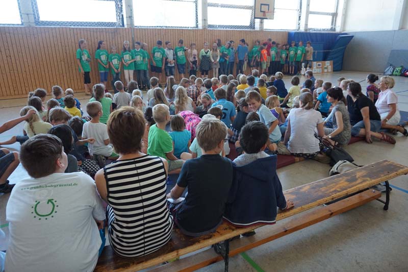 begrüßen wir die neuen Schülerinnen und Schüler in der Turnhalle