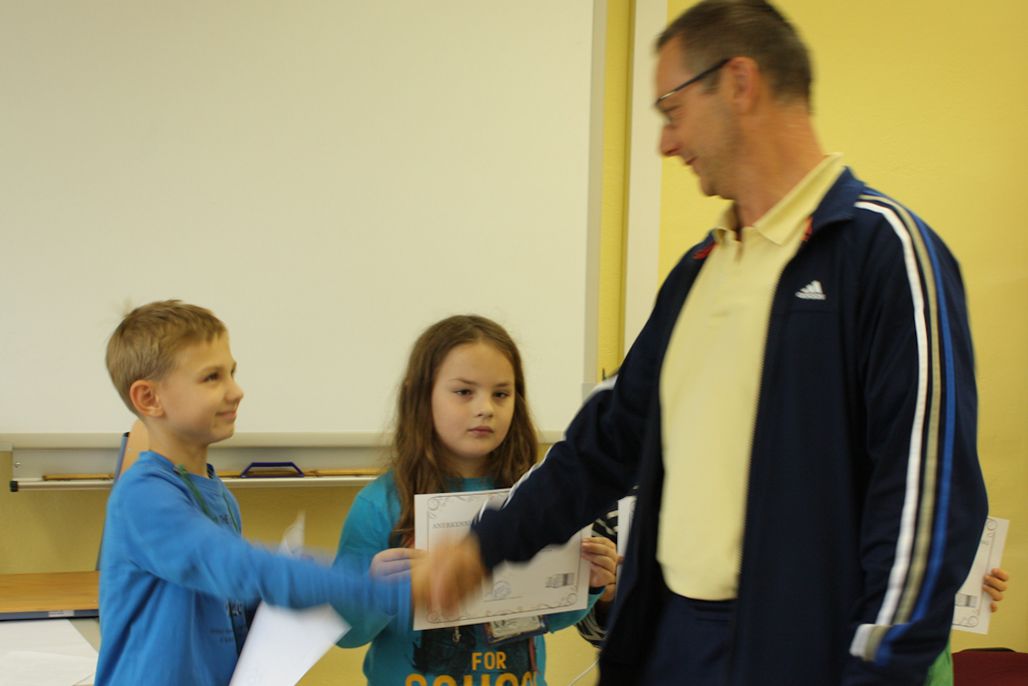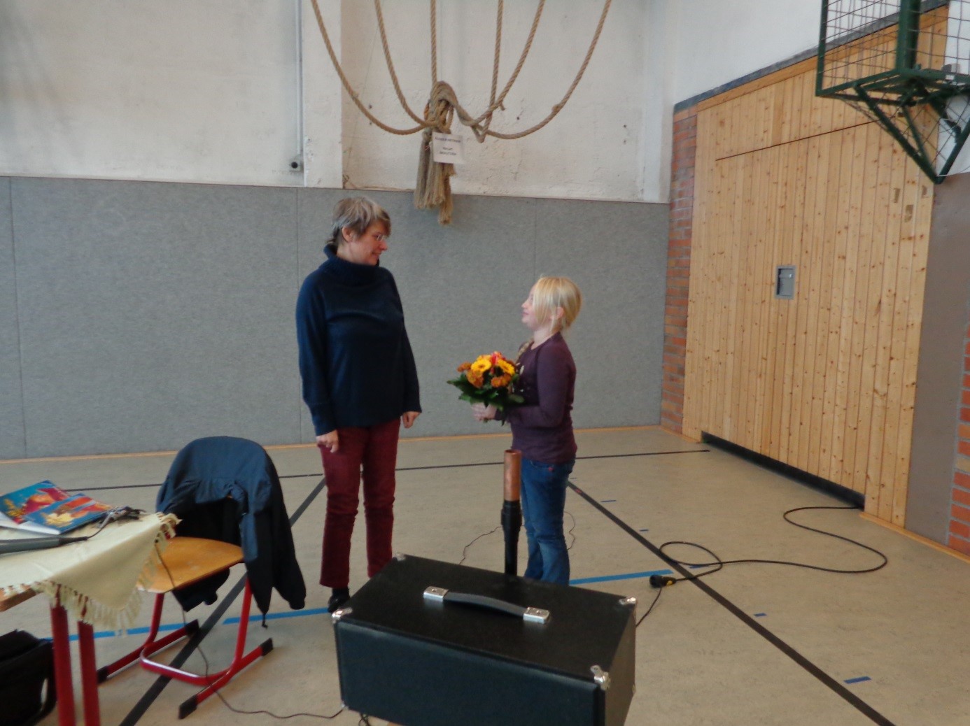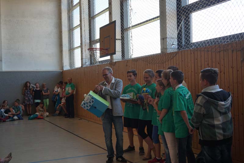 und Lehrer Herr Behrend überreicht stellvertretend für