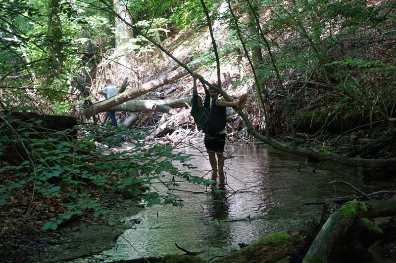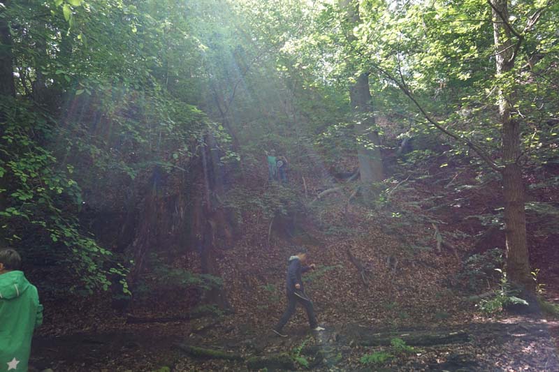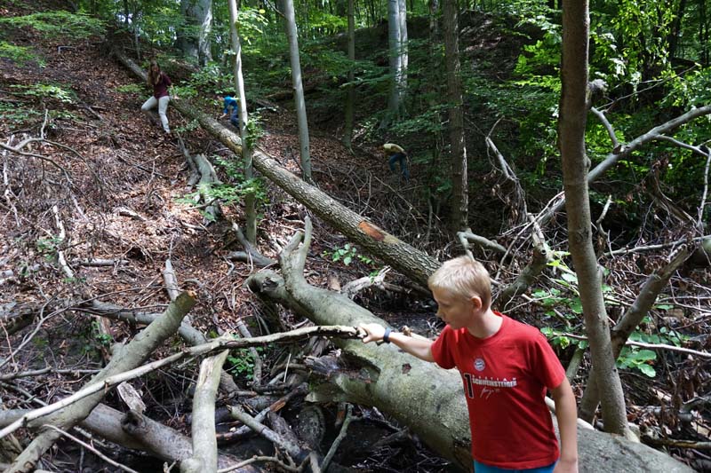 Am 16.6. wanderte die Klasse 6 bei schönstem Wetter mit ihrem Klassenlehrer durch unsere schöne Heimat. Von Rüdnitz aus ging es nach Lobetal und von dort in den Langerönner Weg... Nach zügiger Wanderung durch den Wald erreichten wir die große Wiese oberhalb des "Mückensee's". Dort pausierten wir und beschäftigten uns mit abenteurlichen Erkundungstouren am moorastigen Seeufer und sportlich mit Ball und Frisbee. Kurz bevor wir die offene Wiesenlandschaft des "Biesenthaler Becken's" erreichten, führte uns unser Wanderleiter auf immer einsameren Wegen entlang, bis wir am tiefen Tal des Hellmühler Fließes ankamen.