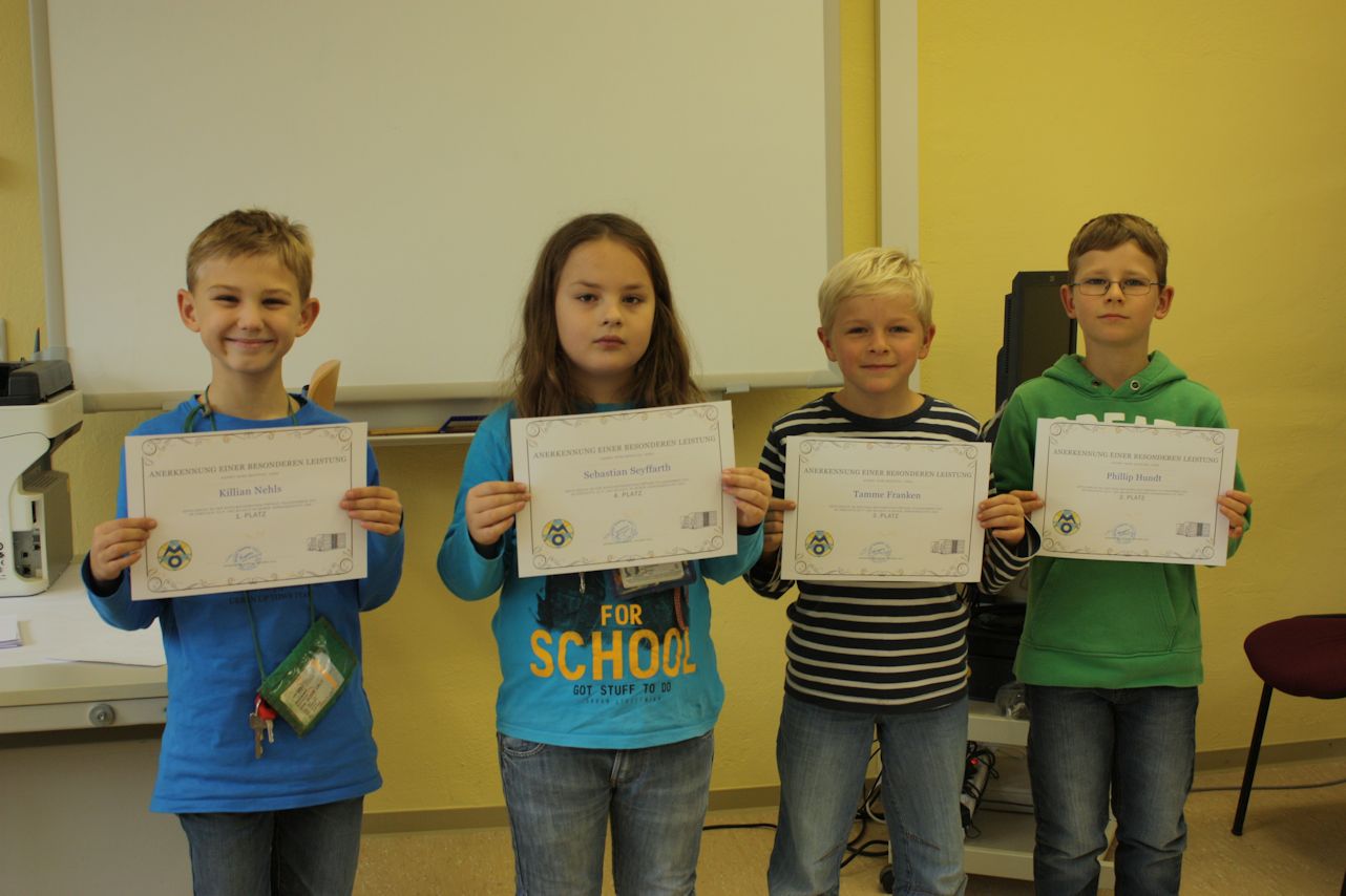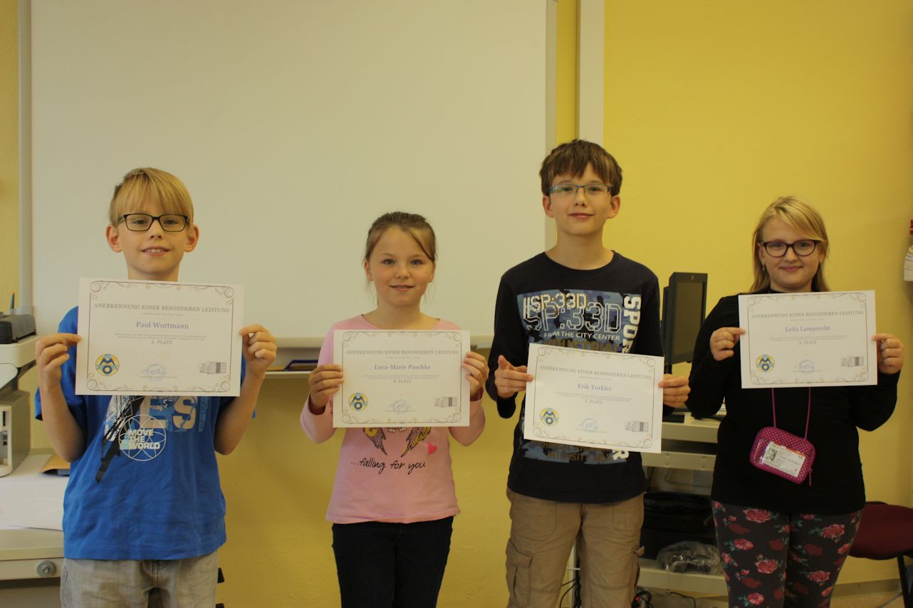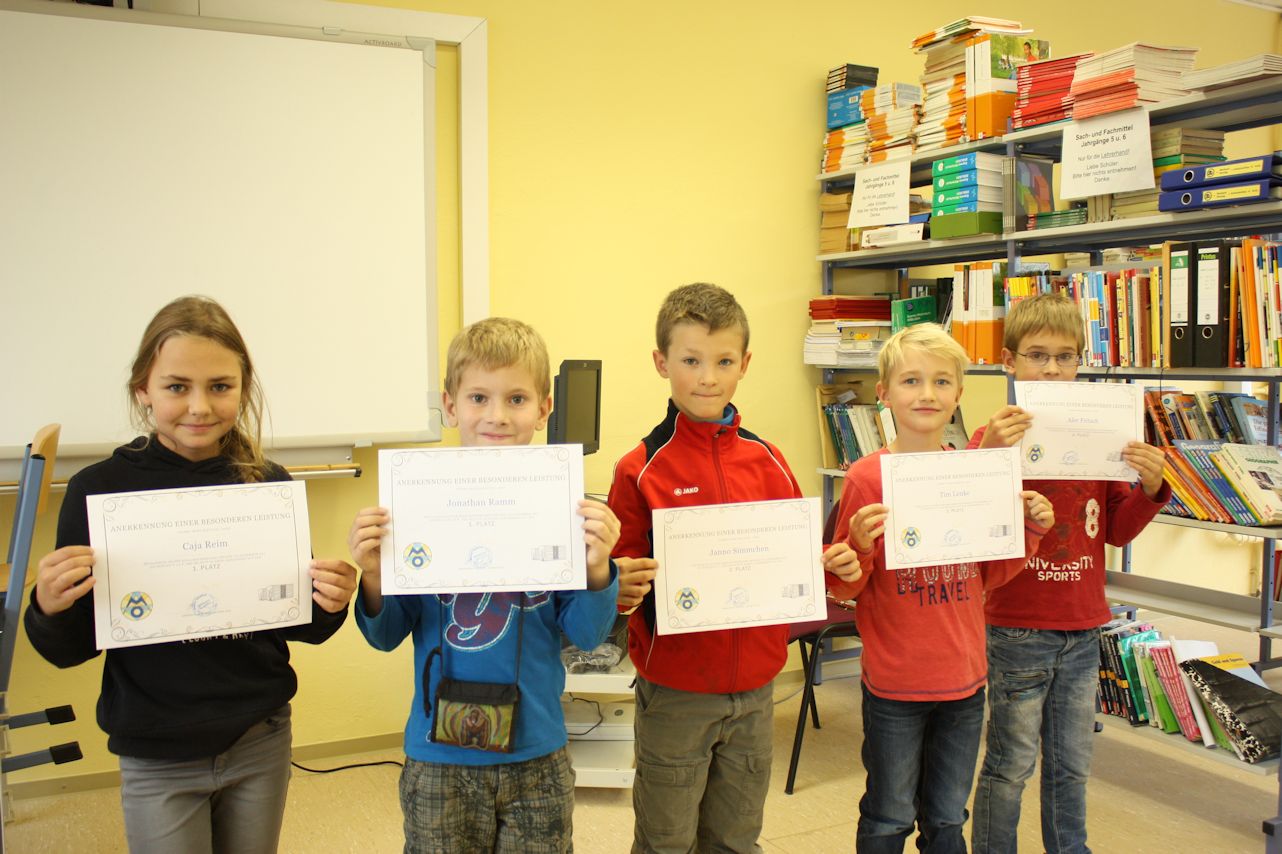 Zum ersten Mal in der langen Tradition (seit über zehn Jahren) der Englischolympiade zwischen den Schulen des Amtsbereiches (Grundschule Grüntal, Externe Links: Grundschule Biesenthal und Grundschule Marienwerder (Seite des Fördervereins der GS Marienwerder)) konnten die Teilnehmer unserer Schule den Sieg des Wettbewerbs erringen. Wir sind sehr stolz auf Euch und in Kürze gibt es hier dazu mehr zu lesen... Fotos: B.Behrend