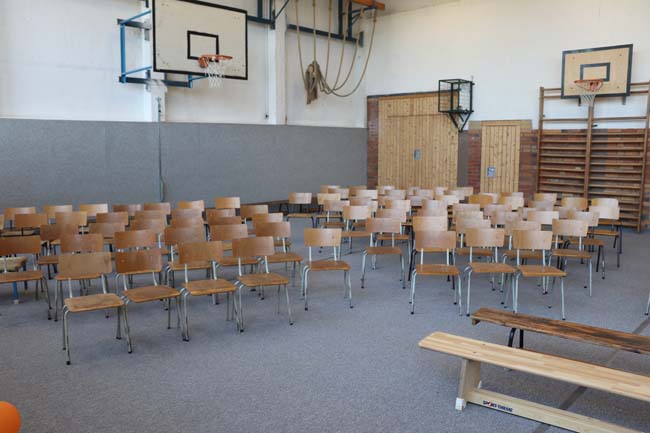 ![]() Vorbereitete Turnhalle im Panoramablick |