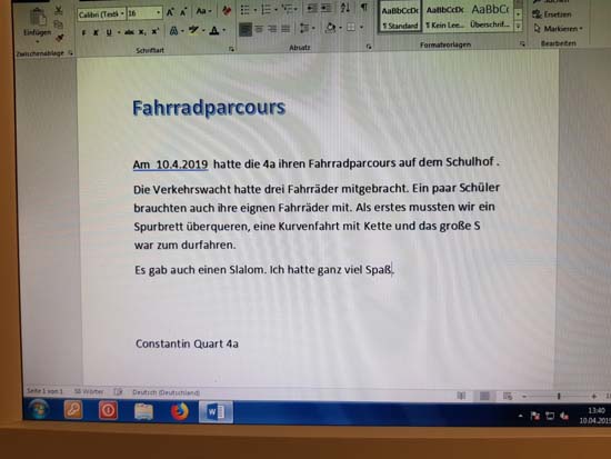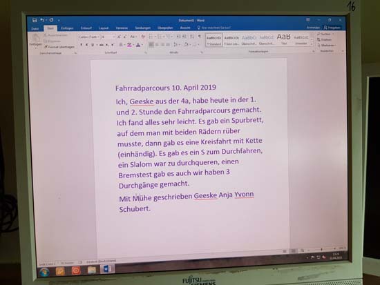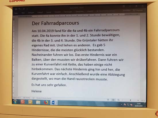 Jasmin, 5b: "Mir gefiel der Park richtig gut. Die Erklärungen warengut verständlich. Das Highlight war für mich de Fahrt mit dem Schienenfahrrad."