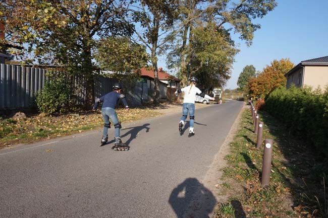 Erst die Theorie... | ... dann die Praxis: | Bremsweg bei 5 km/h auf trockener Straße. |
