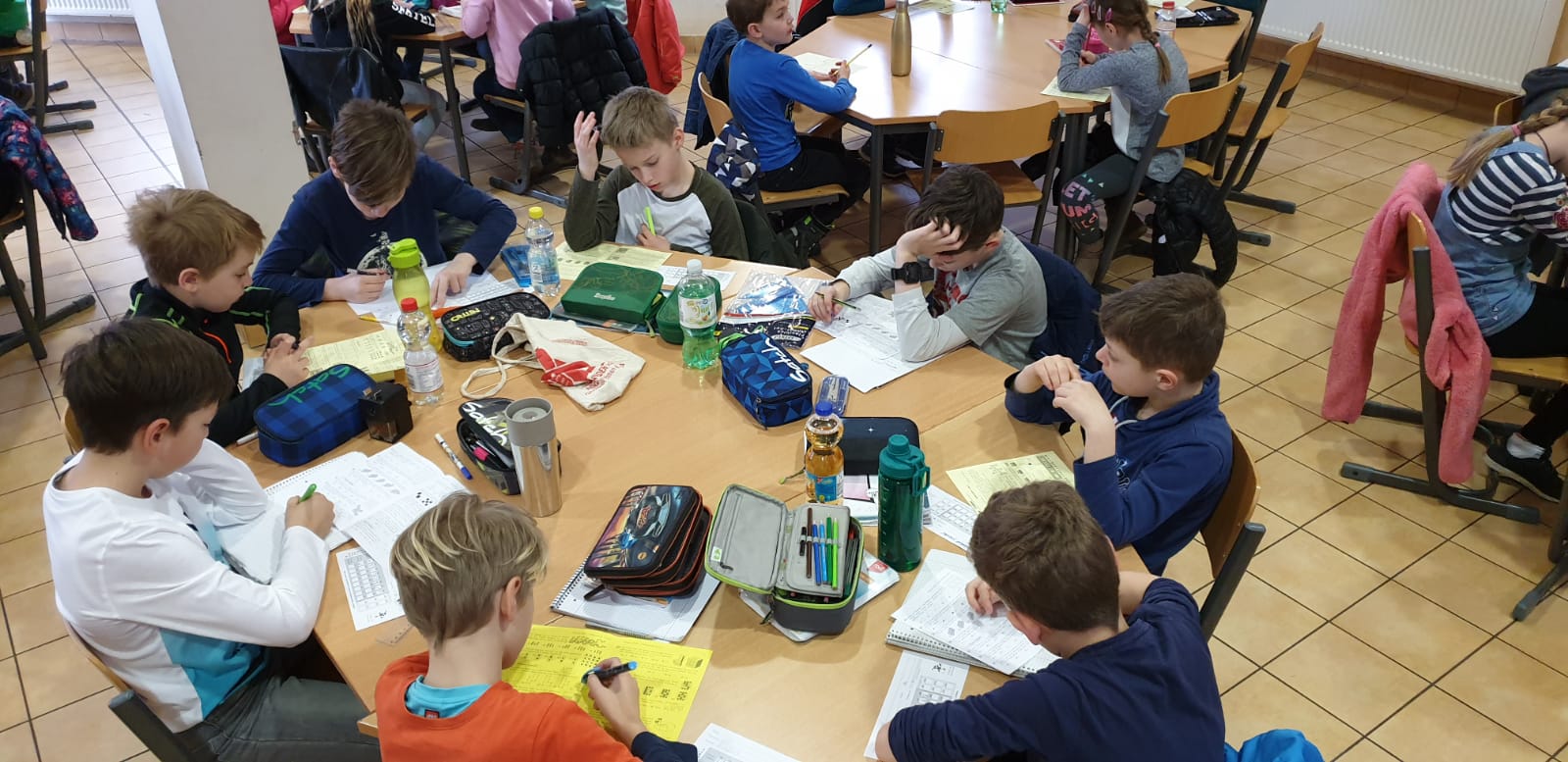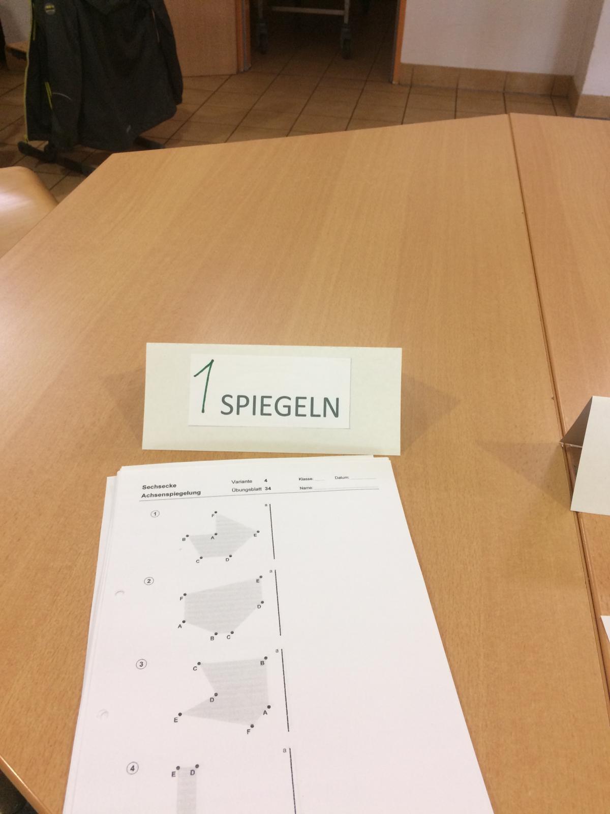 Am 14. Mai hatte die Klasse 4a in der Mensa ein Geometrieprojekt. Die Klasse teilte sich in fünf Gruppen auf. Es gab die Stationen Kreativbauen, Spiegelung, Drehung und Kantenmodell. Außerdem durfte jeweils eine Gruppe draußen spielen. Die schönsten Modelle bei der Station wurden fotografiert. Es hat uns viel Spaß gemacht und wir haben viel gelernt.