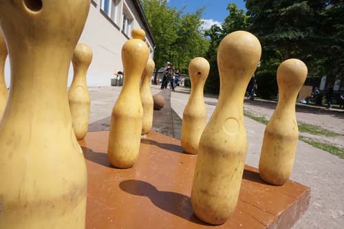 Wasserflasche. Mit den polnischen Kindern durften wir dann ins