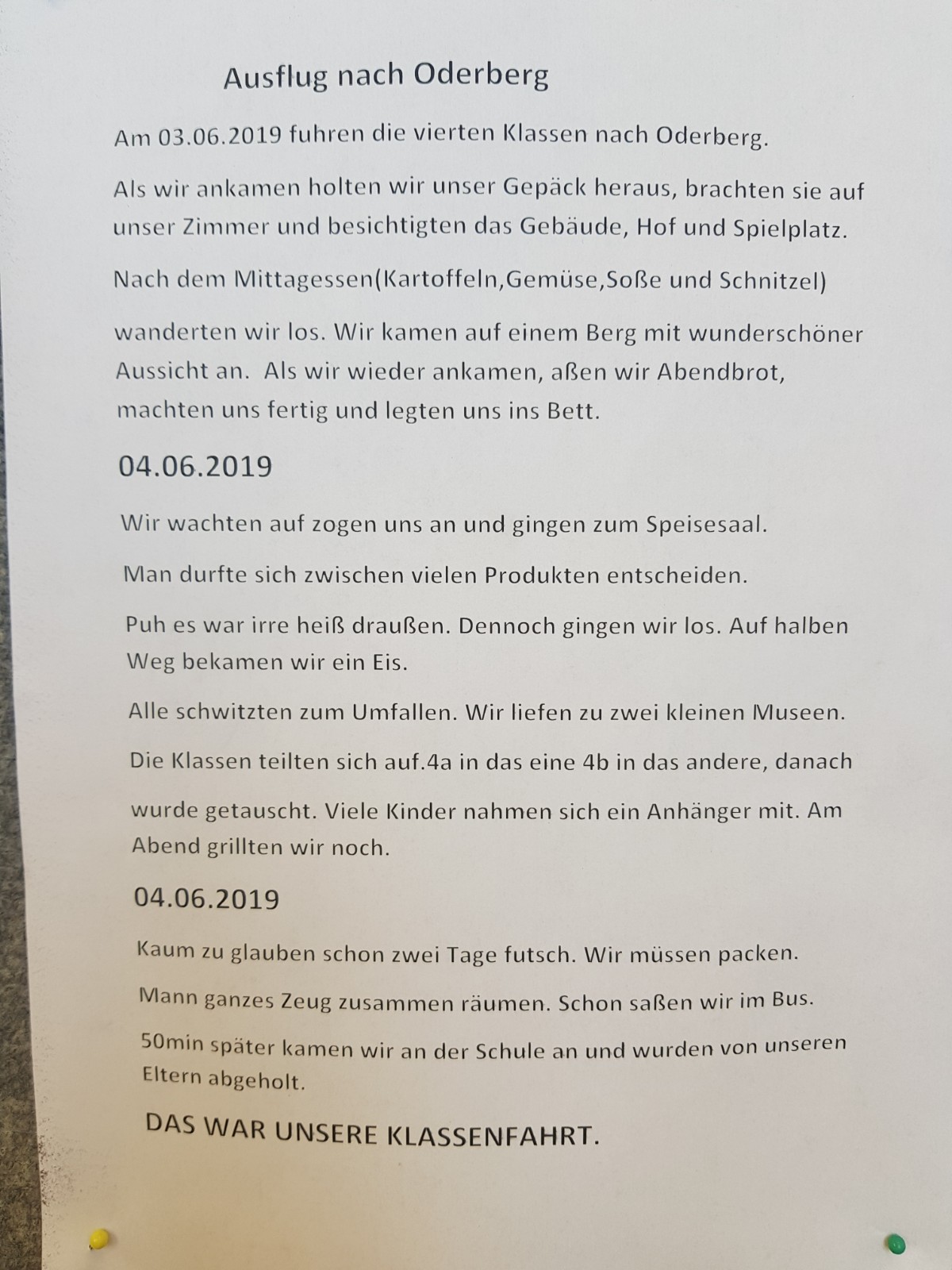 Heute macht es sich der Chronist leicht, in dem er hier die schöne Wandzeitung abfotografierte... Danke an die Schüler! |