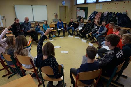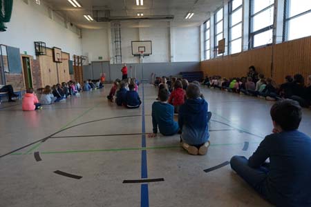 Das Präventionsteam der Polizei besuchte die fünften uns sechsten Klassen. Gemeinsam wurde über Formen von Gewalt in Schule und Alltag gesprochen und nach Strategien zur Abwehr dieser gesucht. |