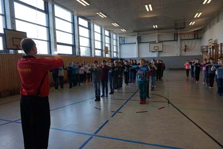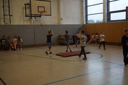regnete. Kurzfristig war also umgeplant und auf die Turnhalle und