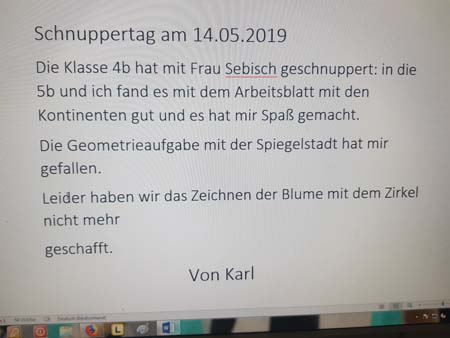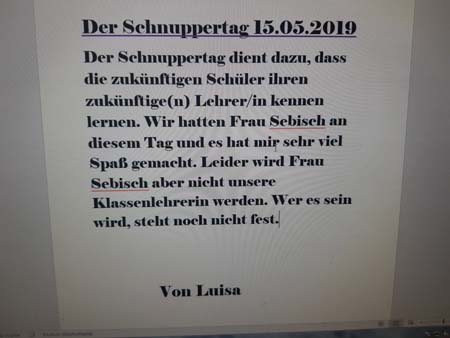 14. Mai: Schnuppertag in der Grundschule