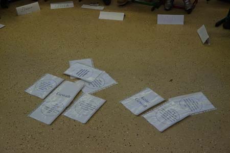 Neben der Vorstellung aller neuen Schülerinnen und Schüler und der neuen Lehrerin Frau Kühne, sowie einem kurzen Schuljahresvorausblick gehören zum Schuljahresauftakt die Überreichnung der Grundschul-T-Shirts, finanziert vom Förderverein der Schule, an die Drittklässler und das Singen der Schulhymne... Danach ging es in die Klassenräume zur Klassenleiterstunde - drei Stunden lang! Ab der fünften Stunde dann aber "Unterricht nach (dem neuen Unterrichts-) Plan". Die 5a zeichnete sich aus: Ohne Murren und mit großem Einsatz war sie mit ihrem Klassenlehrer beauftragt, die Turnhalle wieder für den Sportunterricht frei zu räumen. 270 Stühle mussten in den Container gestapelt werden... Das ergab die erste Mathematikaufgabe: 17 Schüler.