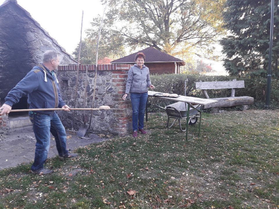 Backen mit den Feldsteinbacköfen erfahren. Uns wurde erklärt und