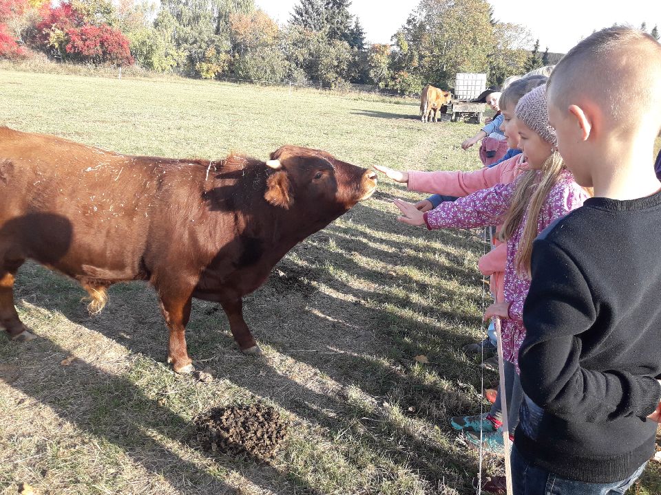 Hübner hat uns alles gezeigt. Wir sahen Kühe, Hühner, Enten und