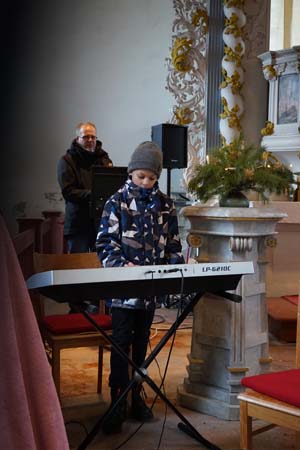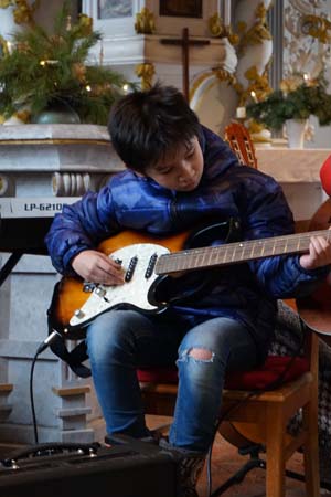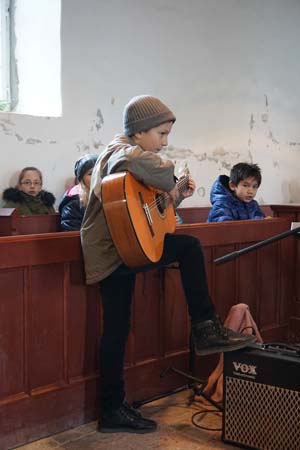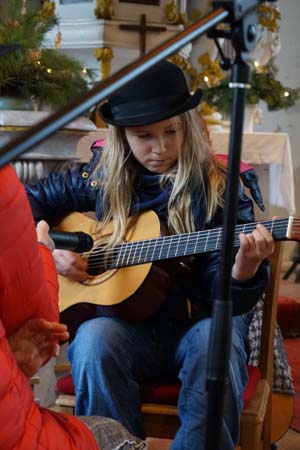 Anleitung von Frau Fleming (an der Orgel) und Frau Ela Mae (Gitarre