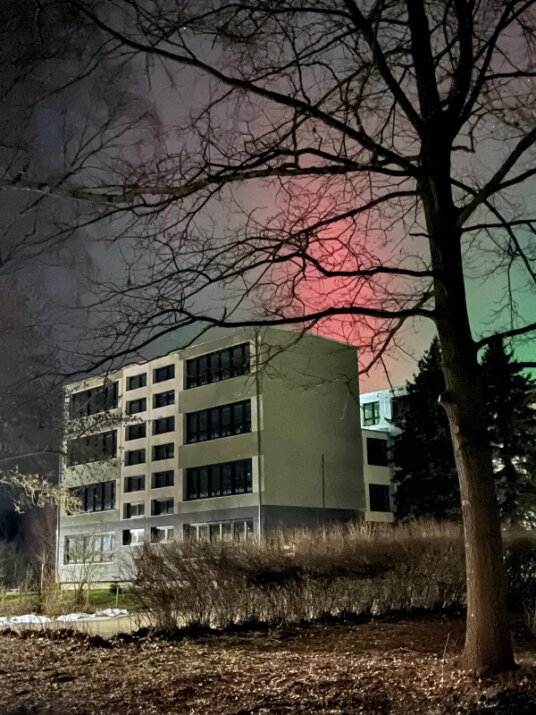Nachts, wenn still ruht die Schule, kommen aufmerksame Beobachter an unserer Schule vorbei und können die Auswirkungen des aktuellen Sonnensturms beobachten und dokumentieren: "Nordlichter", 19. Januar 2026 gegen 22.00 Uhr.